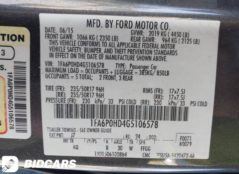 FORD FUSION 14- 2016