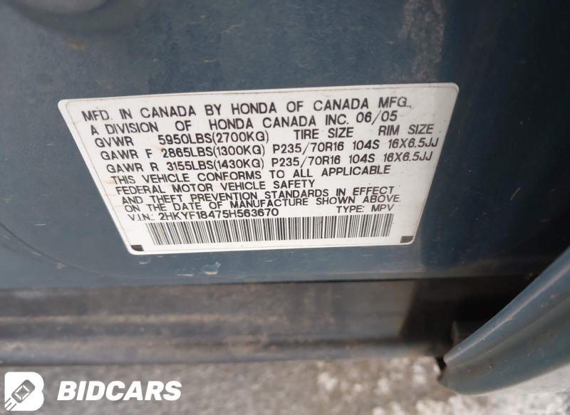 HONDA PILOT 02-08 2005