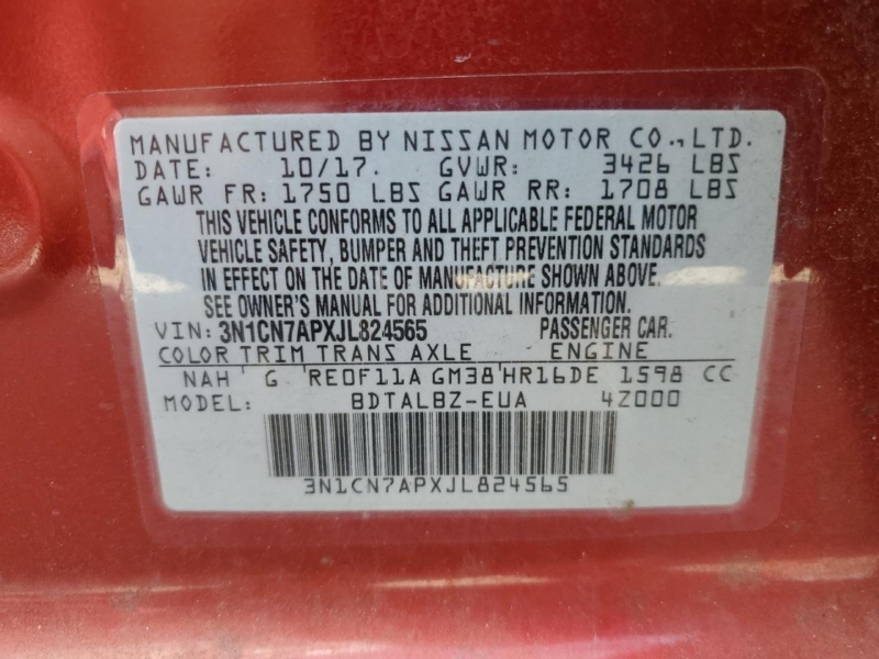 NISSAN VERSA B17 11-19 2017